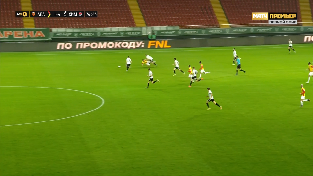Фисенко показал желтую карточку игроку Химок за срыв перспективной атаки