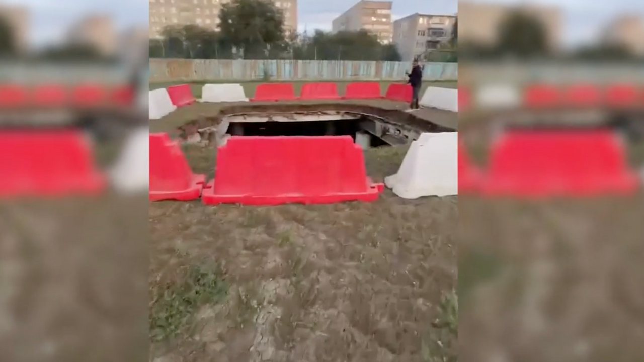 Дыра на школьном стадионе в Орске