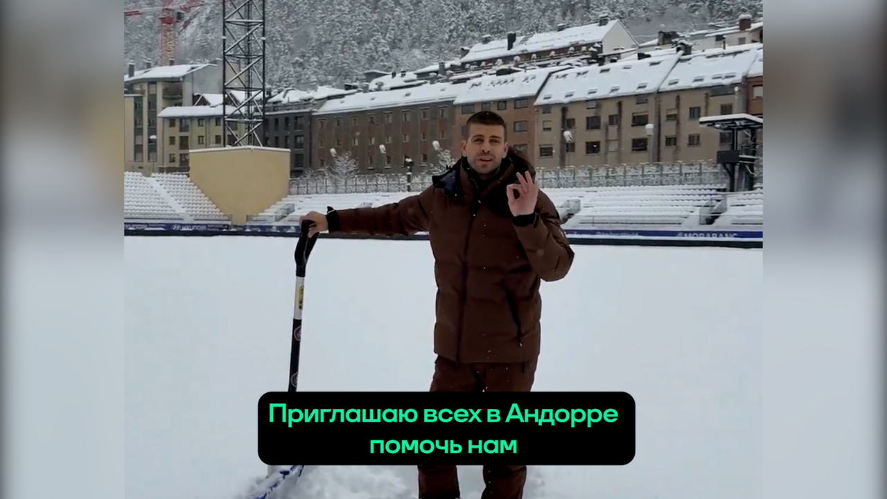 Пике призвал фанатов помочь с уборкой снега на стадионе Андорры