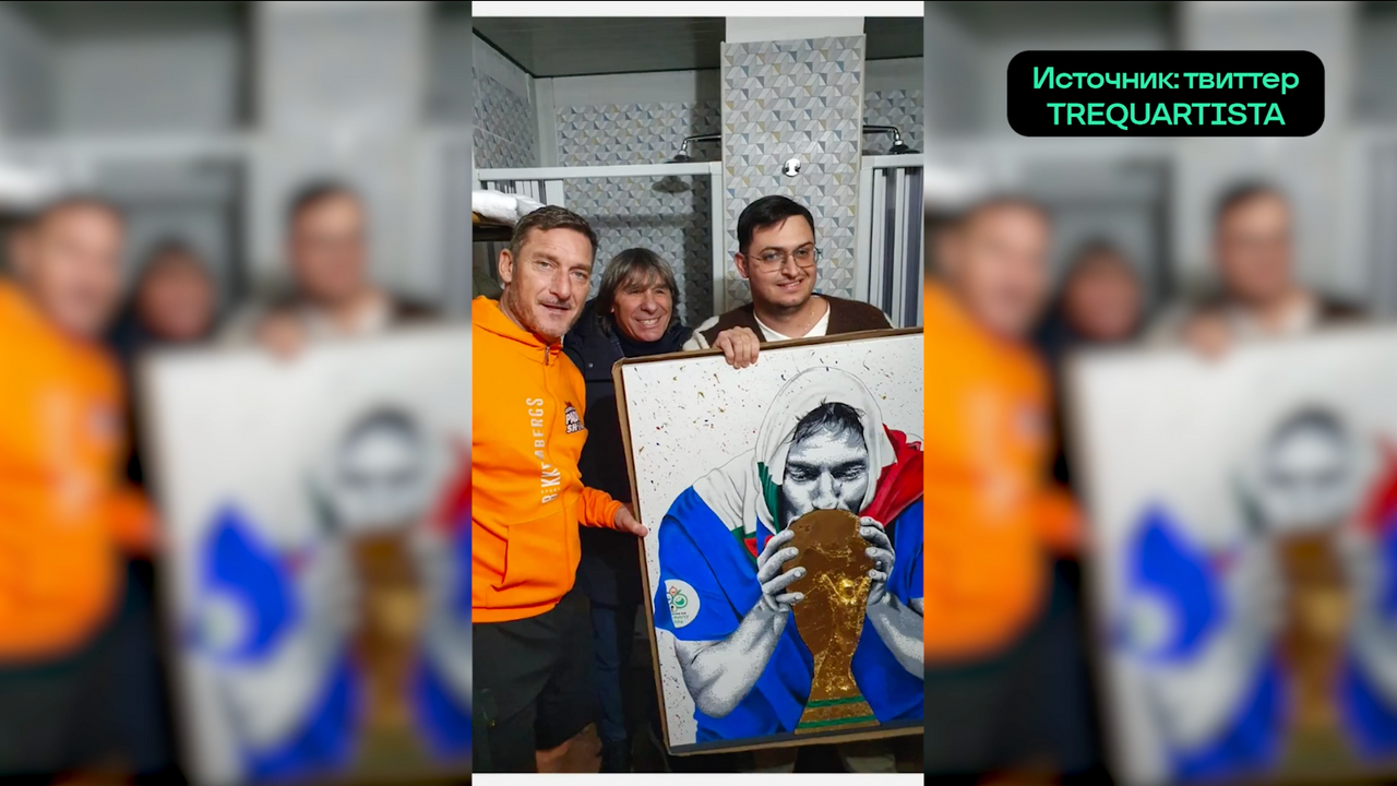 художник подарил Тотти картину, на которой он целует Кубок мира