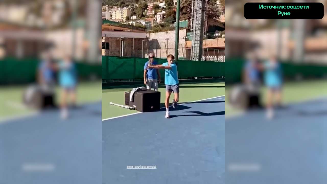 Руне тренируется спустя месяц после разрыва ахилла - он прыгает по корту на одно...